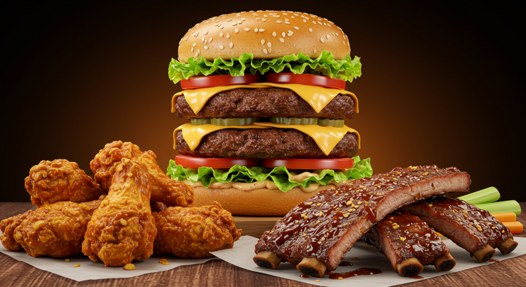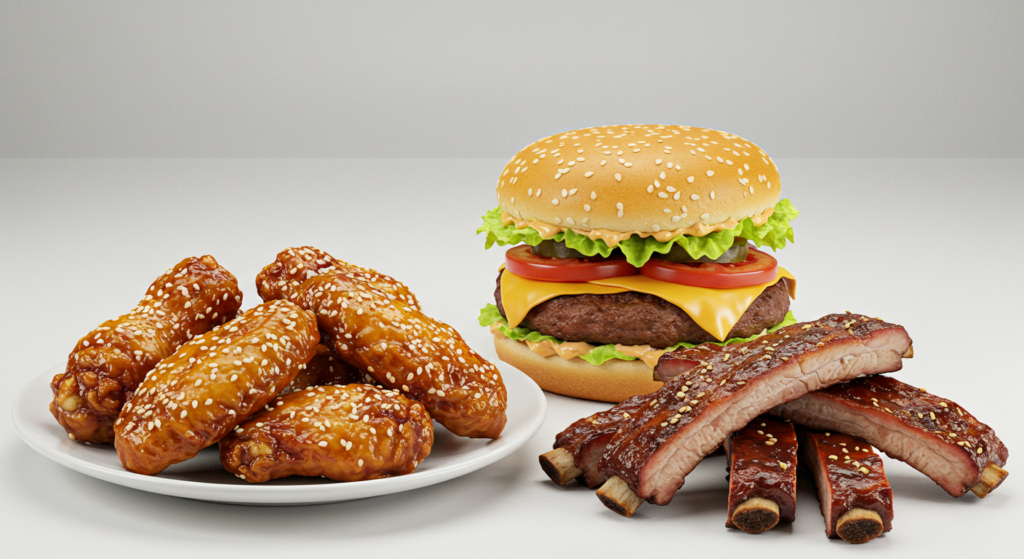 피해야 할 예시 : 햄버거, 치킨윙, 리브스틱