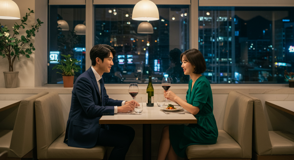 첫 데이트의 목적은 상대방과의 교감을 나누고 서로를 알아가는 데 있습니다. 따라서 지나치게 시끄럽거나 산만한 장소는 피해야 합니다. 대화를 방해하는 소음이 적고, 적당히 조용한 환경에서 식사를 즐길 수 있는 레스토랑이 이상적입니다.